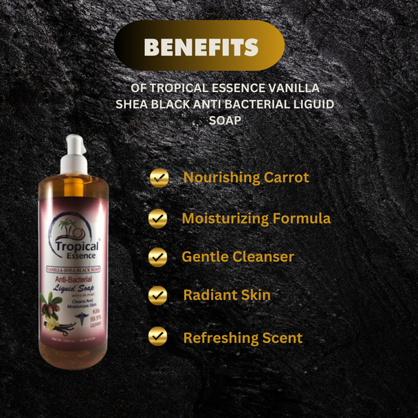 Tropical Essence Vanilla Shea Black Anti Bacterial Liguid Soap 33.8 oz/1000ml