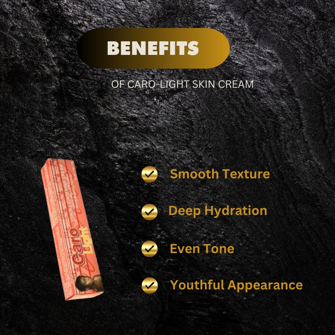 Caro Light Skin Cream is an all-natural, organic cream specifically formulated to gradually fade dark (brownish) areas in the skin such as freckles, age and liver spots. With 1.76 oz of this powerful formula, you can expect to see results in as little as four weeks. The cream also contains a sunscreen to help prevent darkening from reoccurring. Use Caro Light Skin Cream to look more youthful and even-toned, and to restore your skin’s natural beauty!