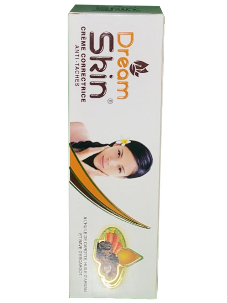 Dream Skin dark spots corrector cream enriched with carrot oil, Argan oil and snail drool smoothes and illuminates skin texture by eliminating stains and resistant black spots in hard-to-treat areas