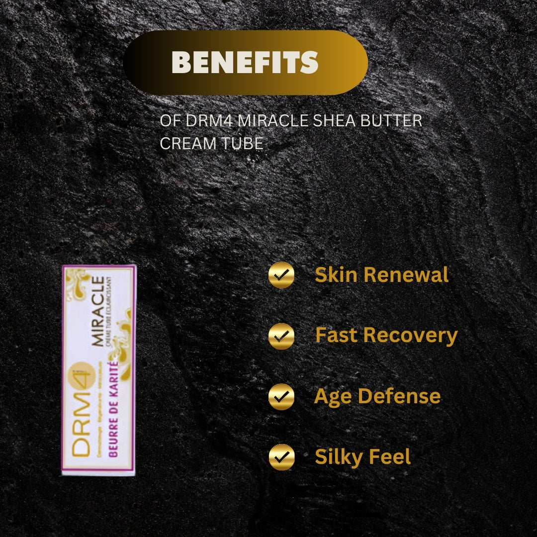 DRM4 Miracle Shea Butter Cream is a fast-acting formula that can help to improve overall skin texture and promote a healthy, radiant glow.