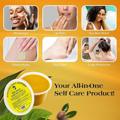 ALL-NATURAL SKINCARE SOLUTION: Infused with potent nutrients, our shea butter helps reduce the appearance of stretch marks, scars, and wrinkles. Its raw, golden formula supports even skin tone and elasticity, making it an ideal choice for targeting dark spots and discoloration.