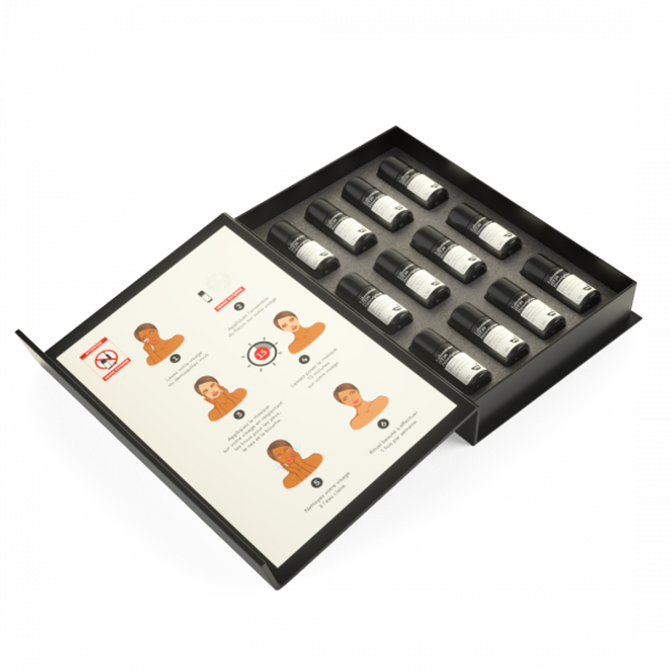 Wash your face and apply the entire bottle. Then apply the fabric mask to your face respecting the holes for the eyes, nose and mouth. Leave the mask on for 15 minutes. Clean with clear water. Beauty ritual to be performed once a week.