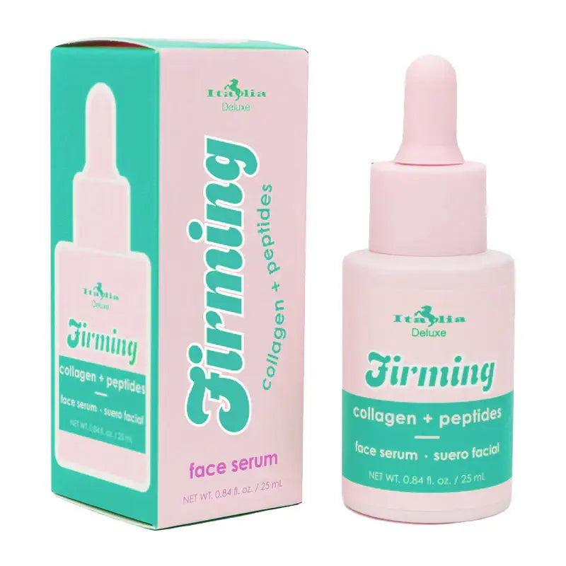 Italia Deluxe 400FS-05 Firming Collagen + Peptides Face Serum. A restorative formula created to enhance skin firmness, elasticity, and overall tone. Infused with collagen and peptides, this powerful serum supports the skin's natural structure while promoting a smoother, more lifted appearance. Collagen helps improve resilience and suppleness, while peptides work to strengthen and rejuvenate the skin's surface for a firmer, more youthful look. The silky, lightweight texture absorbs effortlessly, delivering lasting hydration and a revitalized feel. With consistent use, the complexion appears toned, bouncy, and visibly refreshed, radiating a healthy, lifted glow. 12 pcs in display.