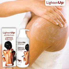 Directions: Apply a thin layer of LightenUp with Milk Protein Brightening Body Lotion to dark spots on dry, cleansed skin twice a day. Avoid eye area. Follow up with minimum SPF 30 sun protection daily during and after treatment in order to prevent further skin discoloration.