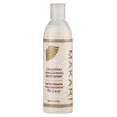 For years, women of color have sought high-end skincare products designed exclusively for their unique concerns. Finally, with the Classic collection by Makari, everyone can achieve the clear, smooth, glowing complexion they’ve always dreamed of. Specially formulated for all skin types, our Luxurious Lightening Exfoliating Body Wash is enriched with hydrating aloe vera, brightening glycolic acid, and mulberry root extract, a naturally derived active whitening agent. In the bath or shower, lather up both face and body with this exfoliating cleanser, and watch as acne marks, scars, and discoloration fade away for a fresh, youthful, perfectly even appearance. This rejuvenating soap is also great for replenishing dry skin’s natural moisture. Use routinely with Makari’s complete line of Classic lightening products to achieve your ideal shade of beautiful!