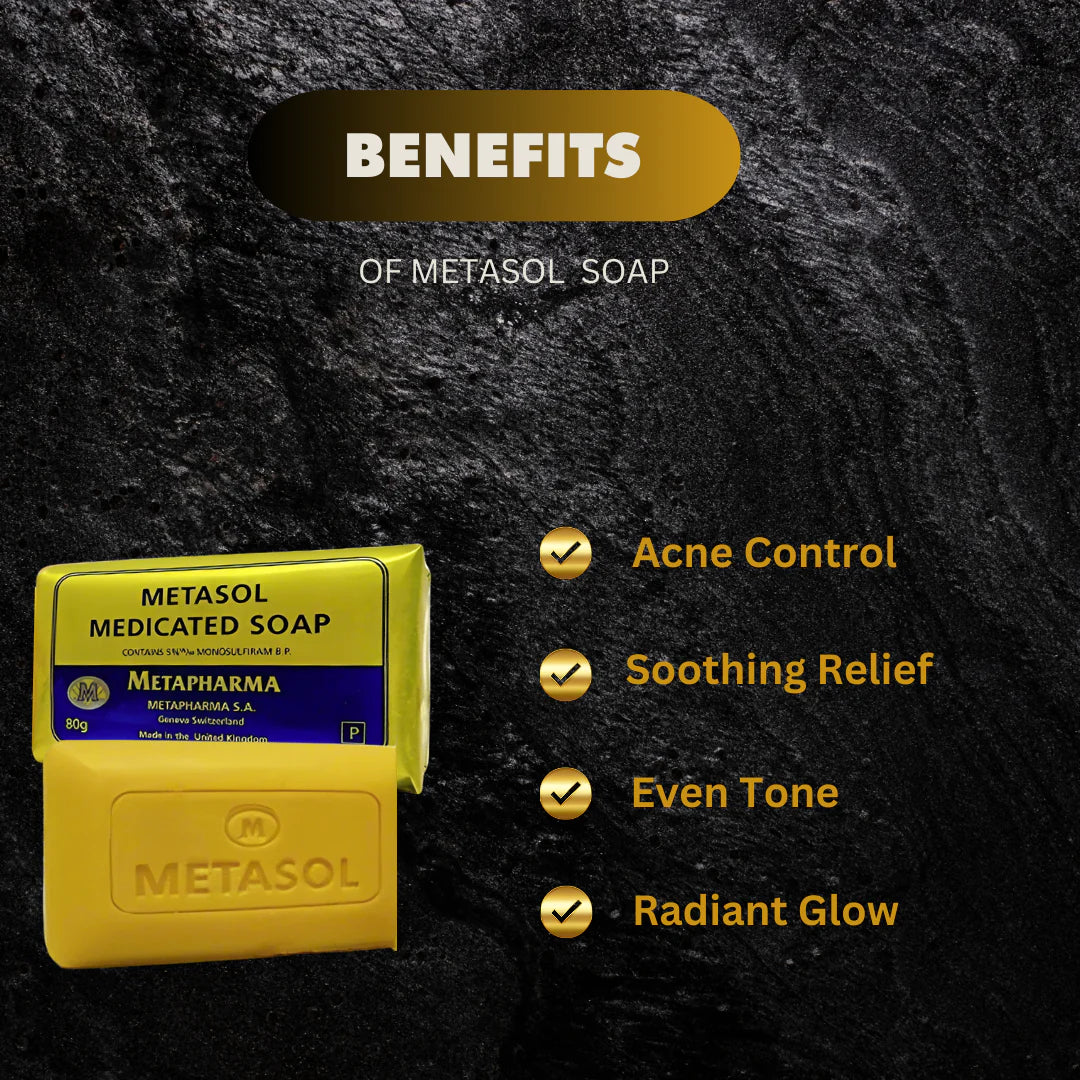 - Metasol Medicated Soap is a powerful cleansing soap designed to treat various skin conditions.