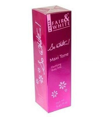 Fair & White So White Maxi Tone Clarifying Body Milk 250 ml Clarifying and moisturizing body lotion formulated to lighten dark areas of the body. Directions: Apply a thin layer of Body Clearing Milk lotion to affected areas on dry, cleansed skin, preferably at night. Recommendation: Follow up with our Skin Protect SPF 50 Sunscreen daily in order to avoid further pigmentation.
