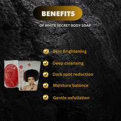 White Secret Body Soap 190 G White Secret Soap for Body and Face Contains Natural Assets Proven to Enlighten for A Deeply Cleaning Which Leaves the Skin Smooth and Fresh All Day.